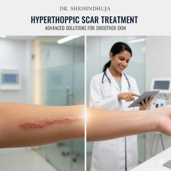 Are you struggling with raised, thick, and uncomfortable scars after an injury or surgery? At the clinic of Dr. Shrisindhuja, leading Dermatologist and Skin Specialist, you can find safe and effective hypertrophic scar treatments designed to restore your skin’s smooth and healthy appearance.